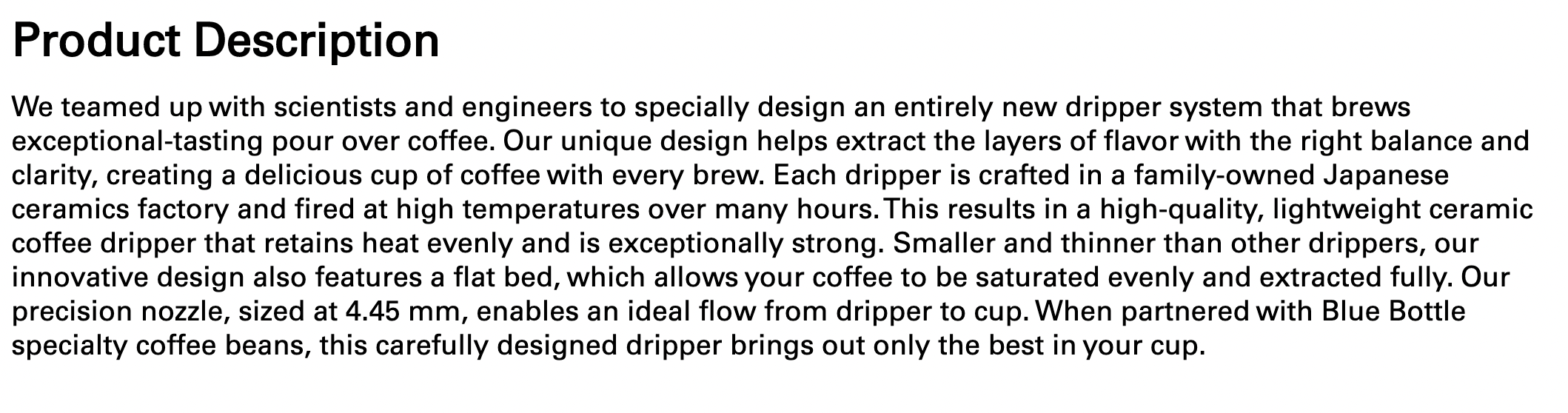 After being onboarded into the Integer Group in June of 2022, it was high time for me to sit in on my first big project as the humble yet high-end brand Blue Bottle Coffee sought out our team to percolate their eCommerce presence on Amazon. With the fantastic support of my fellow copywriter Scott Corbitt and creative director Jo Fitzgibbon, along with some incredible art direction from Mackenzie Rollins, I took my first steps into the world of eCommerce copywriting with confidence. We made sure to center on our client’s desire to bring their slow-roasted brew to all levels of coffee enthusiasts, and proved that no matter how experienced you are with coffee, Blue Bottle never fails to deliver a high-quality brewing experience.